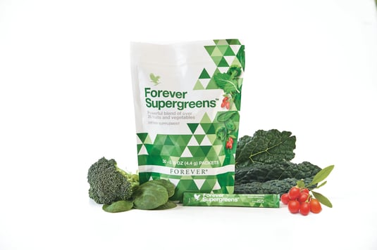 Forever Supergreens™ enthält über 20 Frucht- und Gemüsesorten sowie Aloe Vera. Die Kombination aus Vitamin C, E und Magnesium unterstützt die Leistungsfähigkeit deines Körpers. Mit Wasser oder einem anderen Getränk gemischt erhältst du einen leckeren grünen Superfood-Drink.